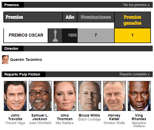 Narrada d’una forma no lineal, la història principal explica la història de Vincent Vega (John Travolta) i Jules Winnfield (Samuel L. Jackson), són dos assassins a sou que tenen com a missió recuperar un misteriós maletí. Vincent li confessa a Jules que Marsellus Wallace (Ving Rhames), el seu cap, li ha demanat que tingui cura de la seva dona Mia (Uma Thurman) mentre ell està fora de la ciutat, però haurà de tenir cura ja que es rumoreja que Marsellus va matar un home per tocar-li els peus a Mia. D’altra banda, Butch Coolidge (Bruce Willis), boxejador, és pagat per Marsellus per perdre a propòsit en la seva pròxima baralla, però acaba matant sense voler al seu contrincant. El que provoca que ell i els seus sequaços li persegueixin, fent que tracti de fugir de la ciutat. I finalment, la situació de l’restaurant en què una dona i el seu marit intenten atracar-lo. La pel·lícula està escrita i dirigida per Quentin Tarantino, i és considerada una de les obres mestres de cinema modern. Va guanyar la Palma d’Or en el prestigiós festival de Cannes el 1994 i un Oscar per millor guió original.